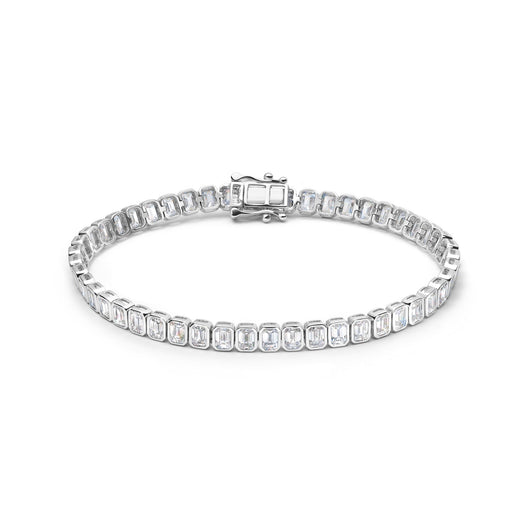 A dazzling display of emerald-cut, lab-grown diamonds totalling 7ct in weight. Each one ethically created, meticulously cut, and bezel-set by hand in 14ct gold, forming a luminous bracelet that radiates light.
